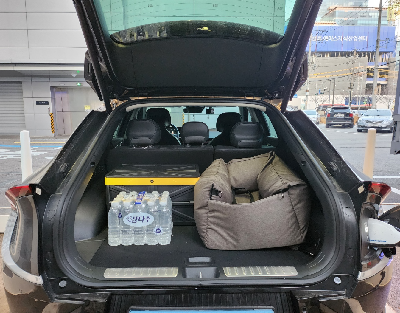 강아지를 키우는 친구라서 애견 카시트를 싣고 다니네요. 넉넉해보여요.