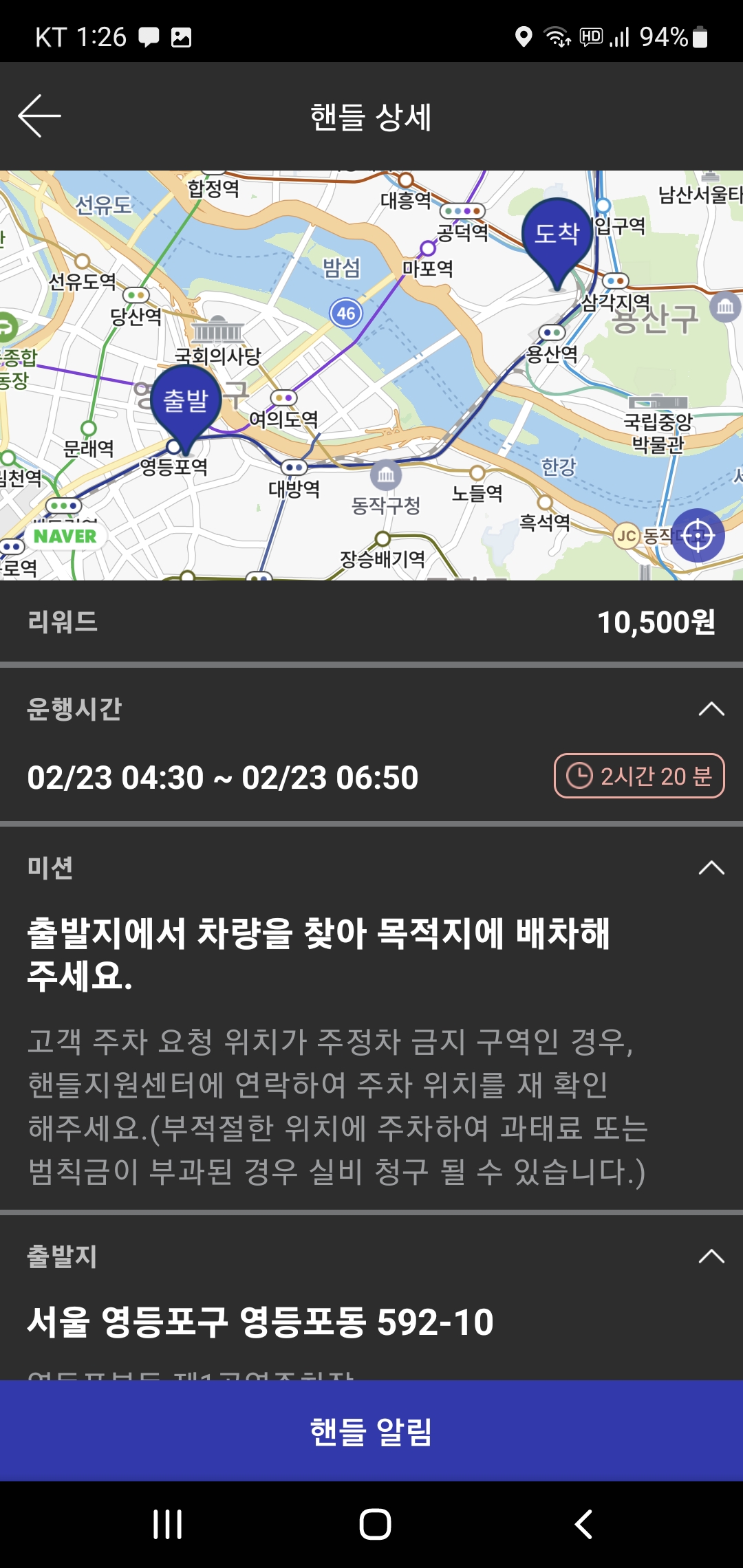 분명 1~5분 뒤면 핸들잡기가 활성화될 미션인데, 갑자기 사라져 버립니다. 차량을 주문한 사람이 취소했을 수도 있겠지만 배송 임무가 아닌 것들도 갑자기 사라지는 경우가 잦아요.