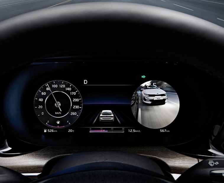 슈퍼비전 클러스터(12.3인치 풀사이즈 칼라 TFT LCD), 헤드업 디스플레이 (내비게이션 적용 시 선택 가능).
