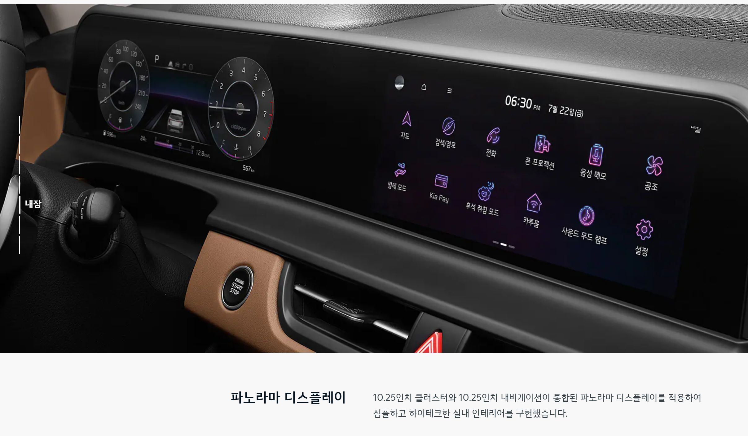 파노라믹 커브드 디스플레이, 슈퍼비전 클러스터(12.3인치 풀사이즈 칼라 TFT LCD)가 설치되어 있어요.