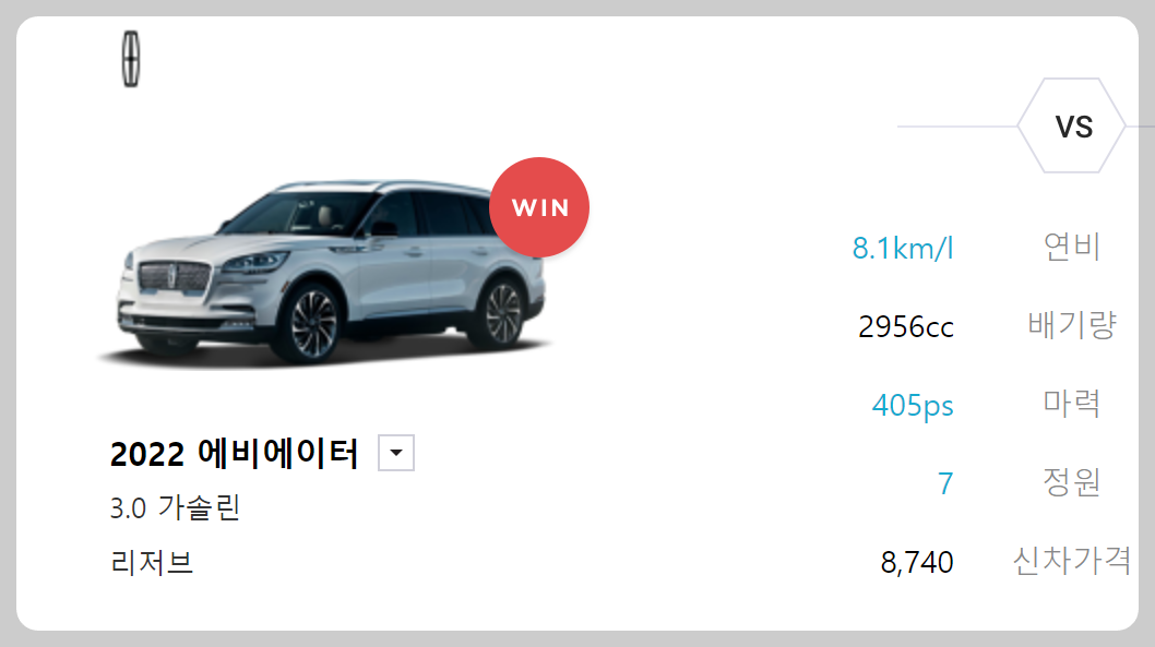 그래서 선택한 차량이 링컨 에비에이터라고 하네요.