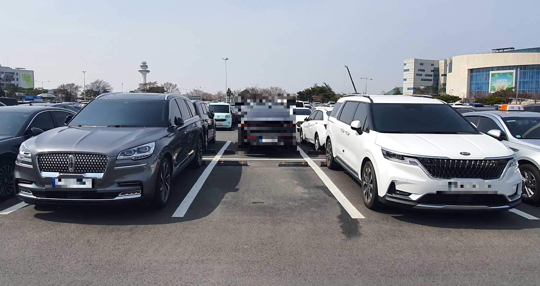 김포공항 주차장에 갔을 때, 카니발 옆자리가 비어서 주차하고 에비에이터와 같이 찍었어요.