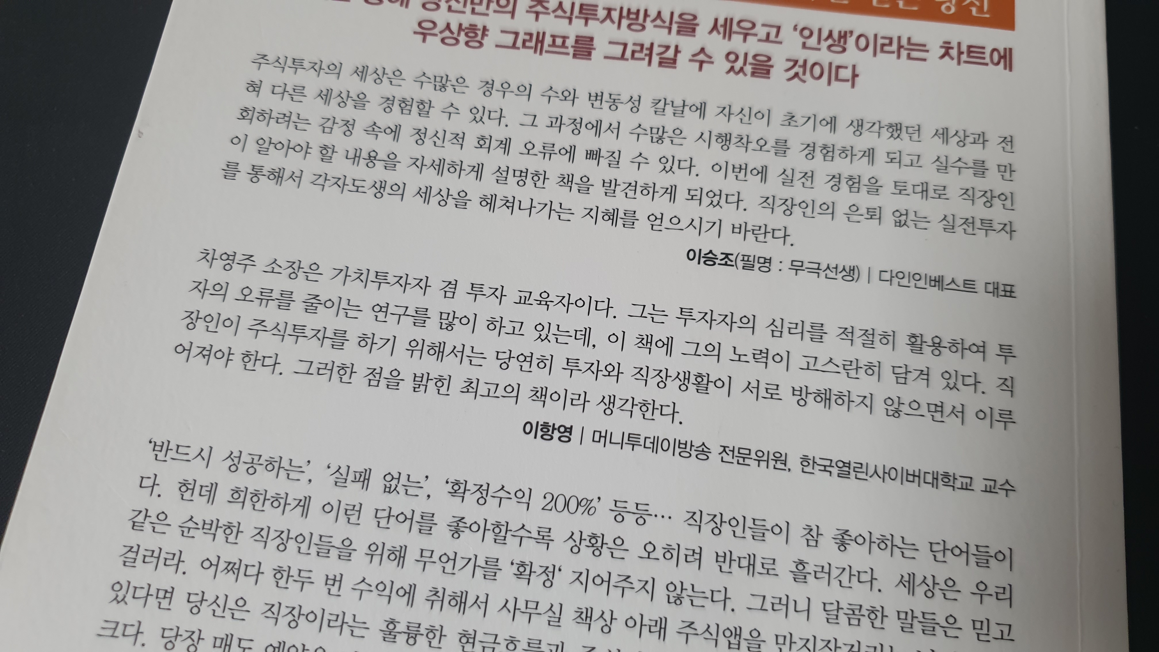 도서관에서 빌려서 본 책들중에 추천할 만한 책들만 소개하려 합니다. Actual stock investment without retirement by office workers, Cha Young-joo's book review, stock psychology.