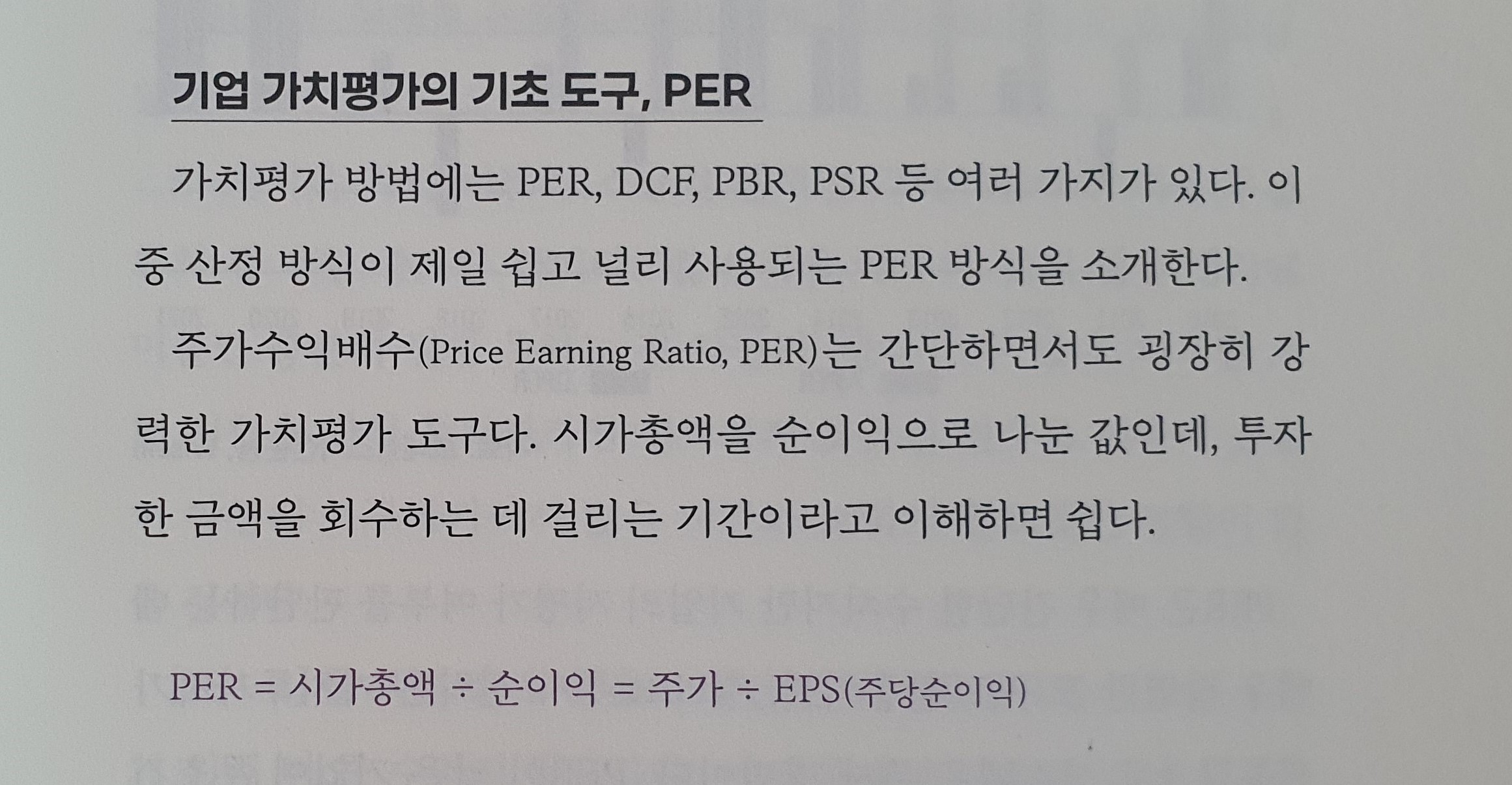 가치평가 방법에는 PER, DCF, PBR, PSR 등 여러 가지가 있다. 이 중 산정 방식이 제일 쉽고 널리 사용되는 PER 방식을 소개한다.
