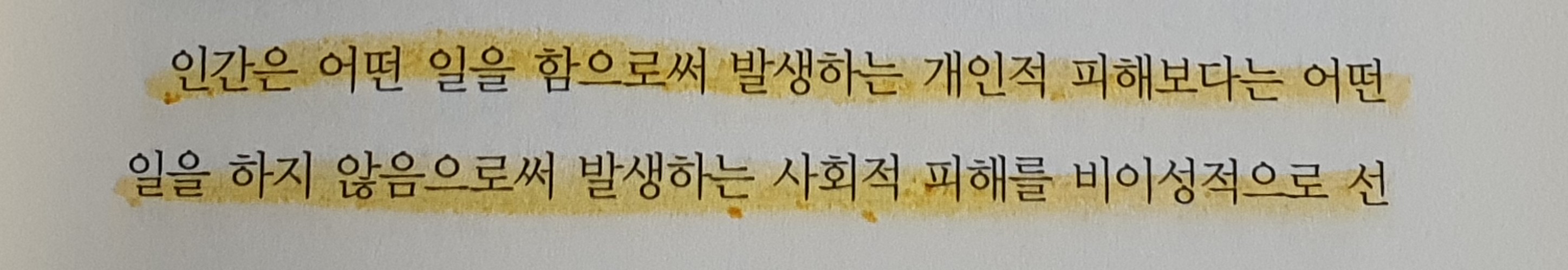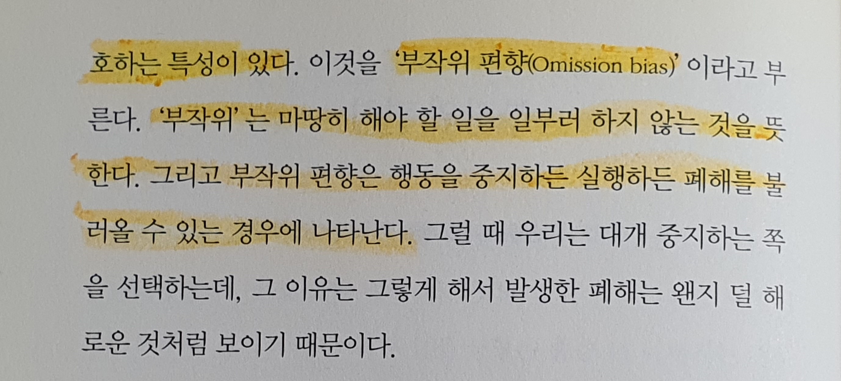 '가만히 있는다, 무언가를 한다'이 둘 다 부정적인 결과를 초래할 수 있다면 가만히 있는다(무언가를 생략한다) 것을 선호한다고 합니다.