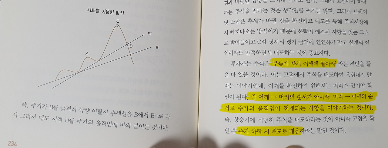 하지만 그것은 오해였고, 내려가는(왼쪽어깨)를 찾아서 매도하라는 뜻이였어요.