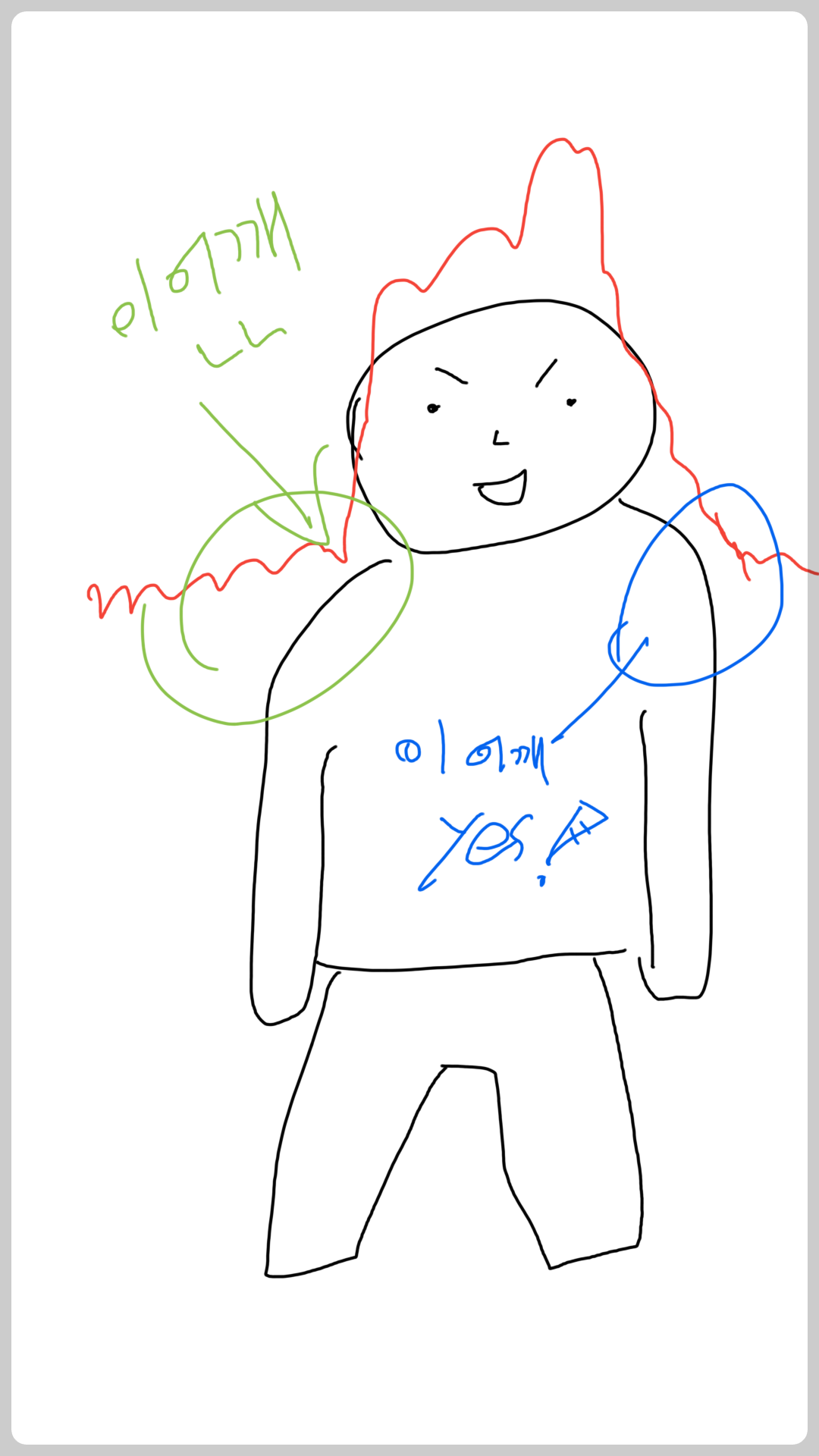 하지만 고점을 찍고 내려올때는 '왼쪽 어깨(인물기준)'가 분명히 보입니다.