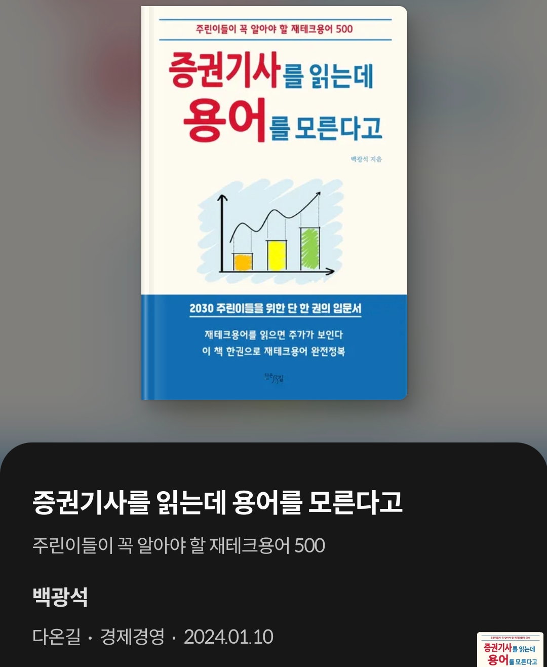 증권기사를 읽는데 용어를 모른다고(주린이들이 꼭 알아야 할 재태크 용어 500) , 백광석, 다온길, 20240110