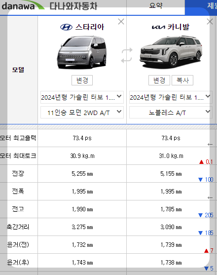 출처 : 다나와 자동차 비교 (https://auto.danawa.com/compare/?Codes=87537@86875)