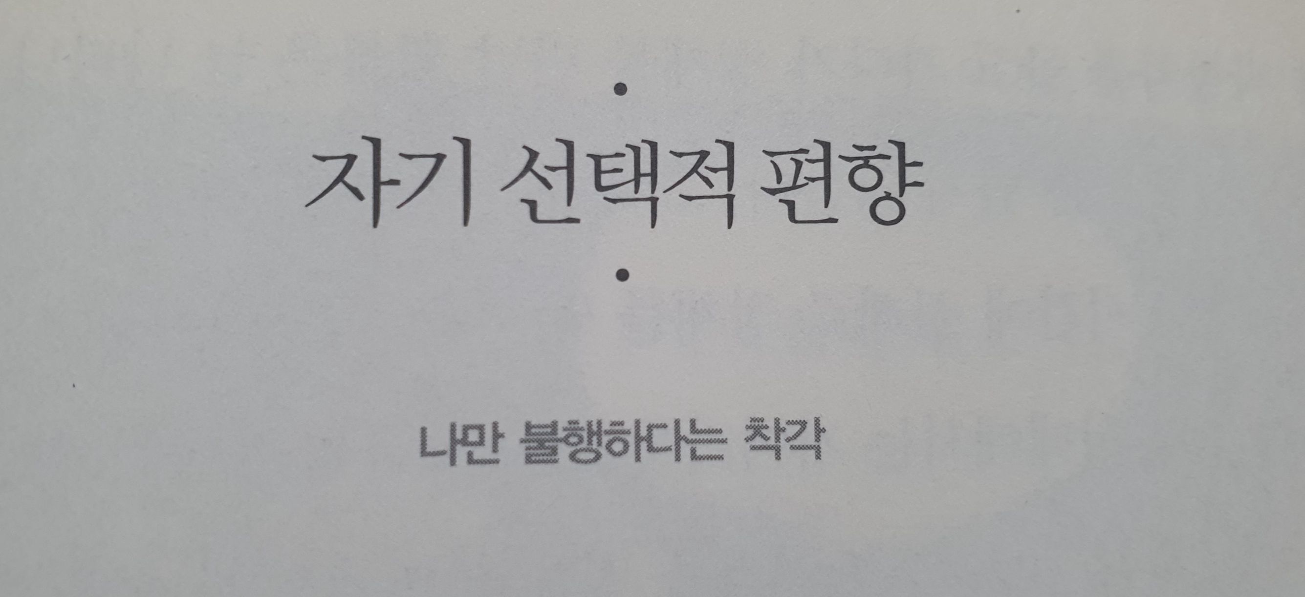 '자기 선택적 편향'은 지나치게 자기중심적이고 객관적인 판단을 못하는 모습으로 보입니다.