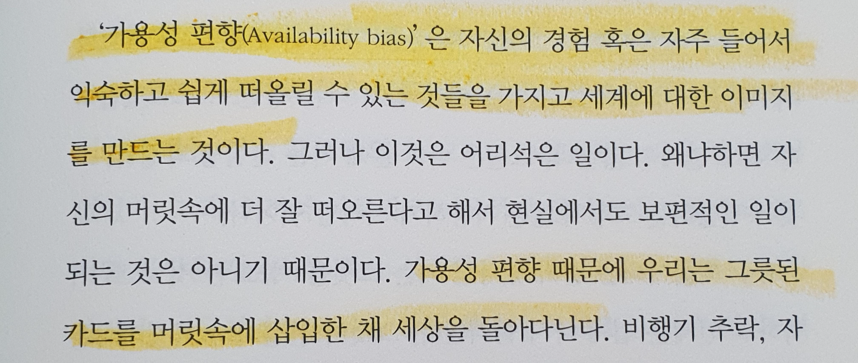 이 책에서 가용성 편향에 대한 적절한 예를 들어줬어요.