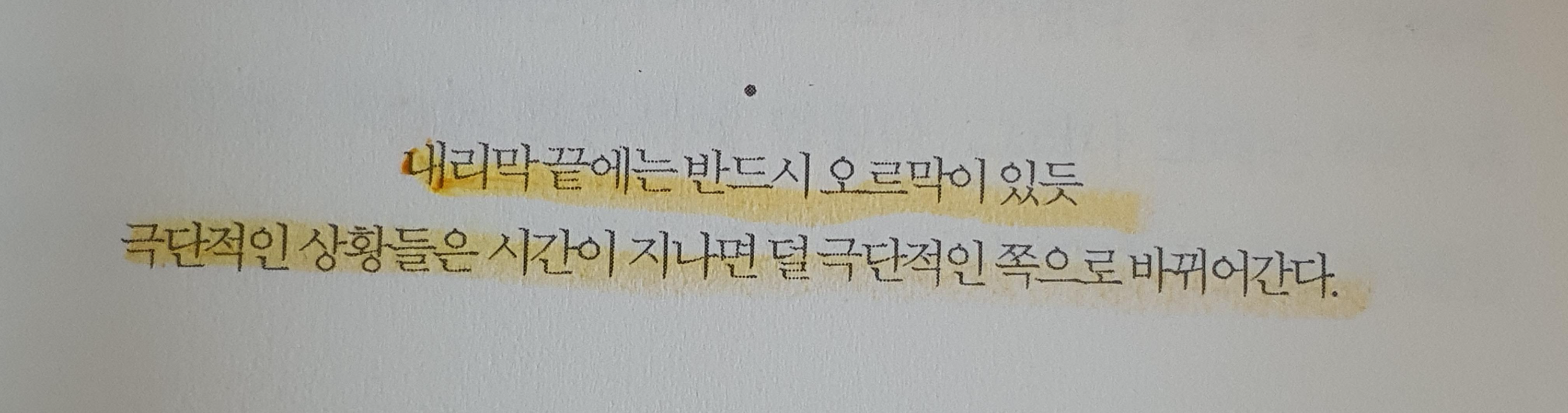 내리막 끝에는 반드시 오르막이 있듯 극단적인 상황들은 시간이 지나면 덜 극단적인 쪽으로 바뀌어간다.