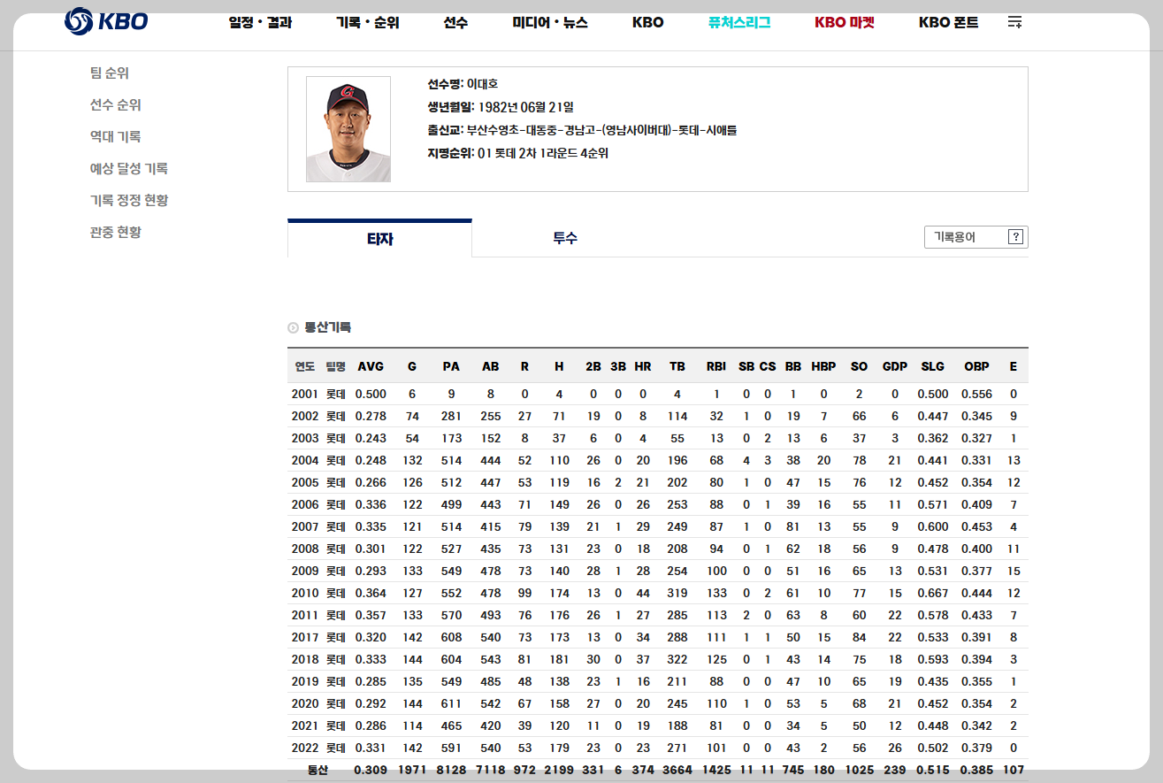 야구 천재 이대호 선수에게도 시즌 중간마다 고비가 있었지만, 매년 '2할 후반~3할 초반' 성적을 꾸준히 기록한 모습입니다.