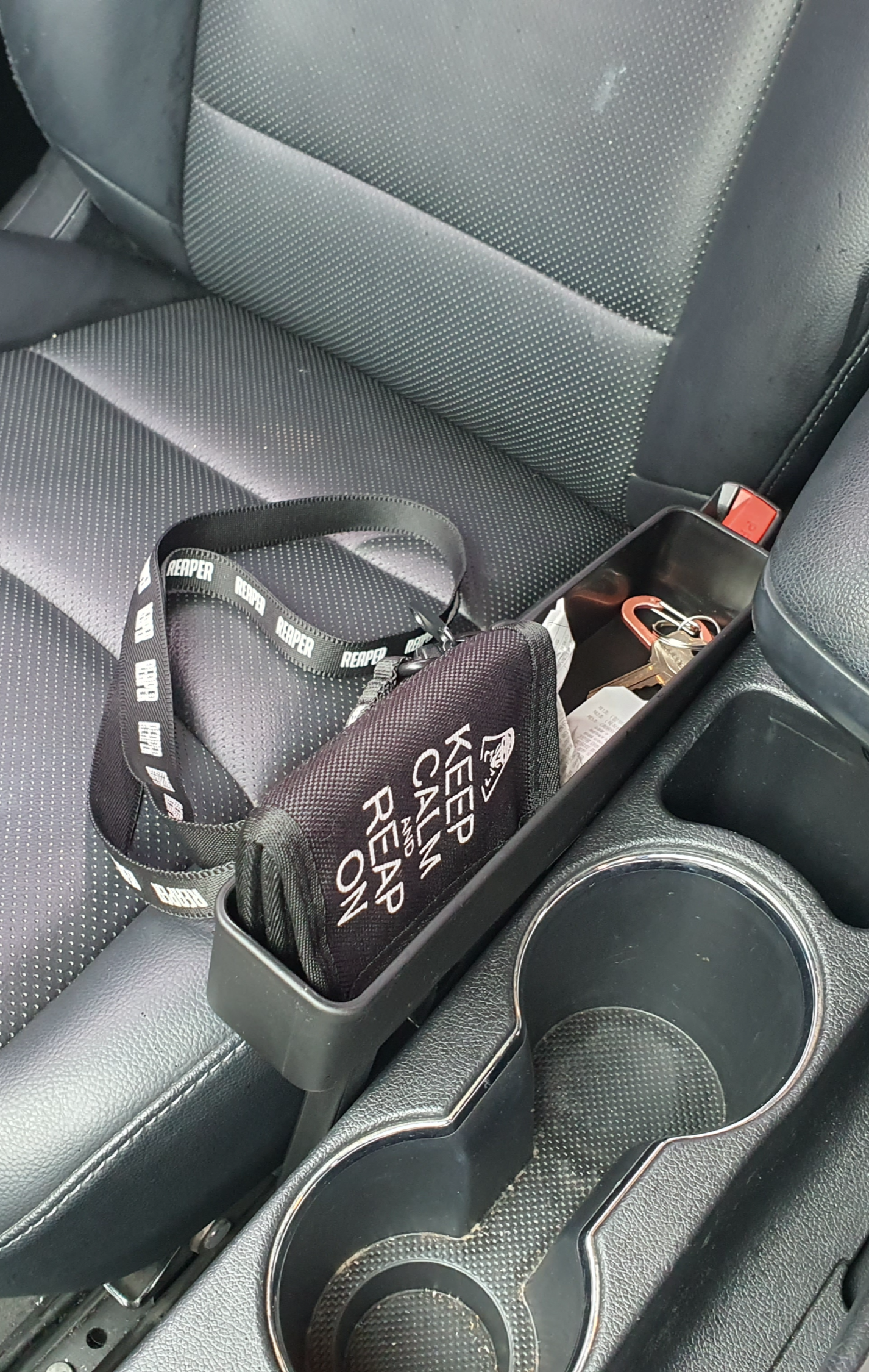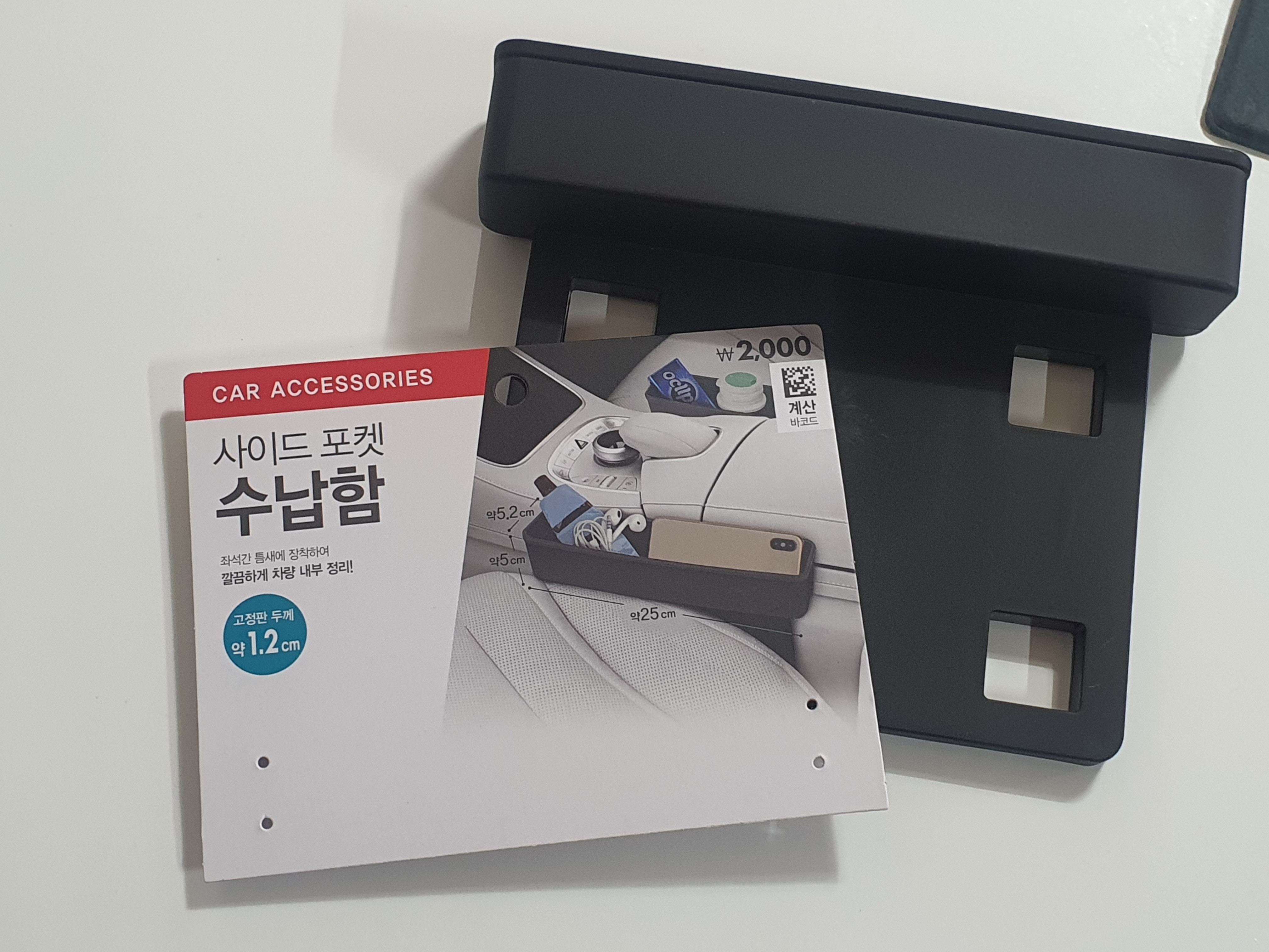 다이소에서 구매한 '차량 사이드포켓 틈새수납함'을 보조석 옆에 설치했습니다.