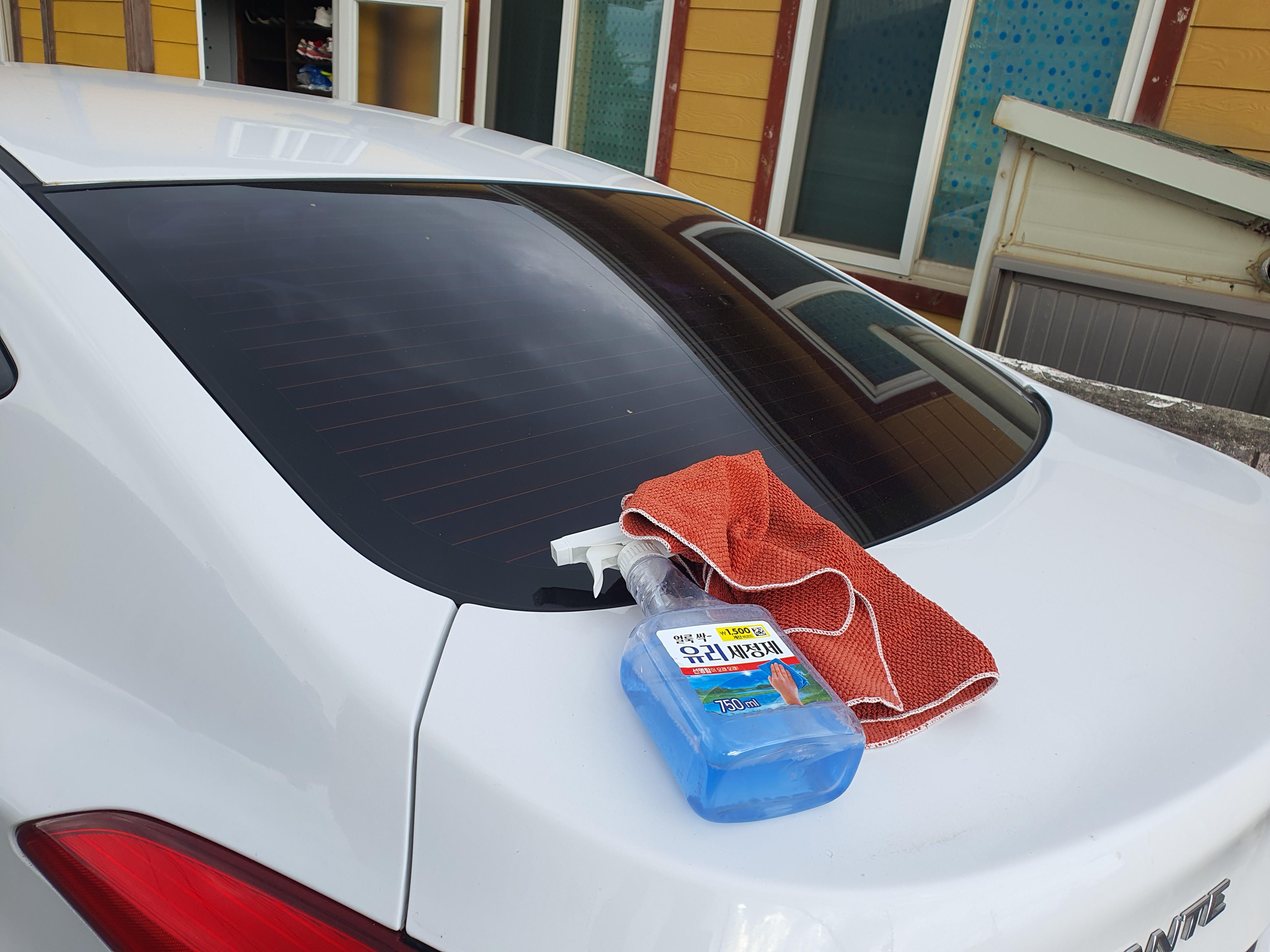 그래서 걱정 없이 차량 유리에 일반 유리세정제를 뿌리고 닦아줬습니다.