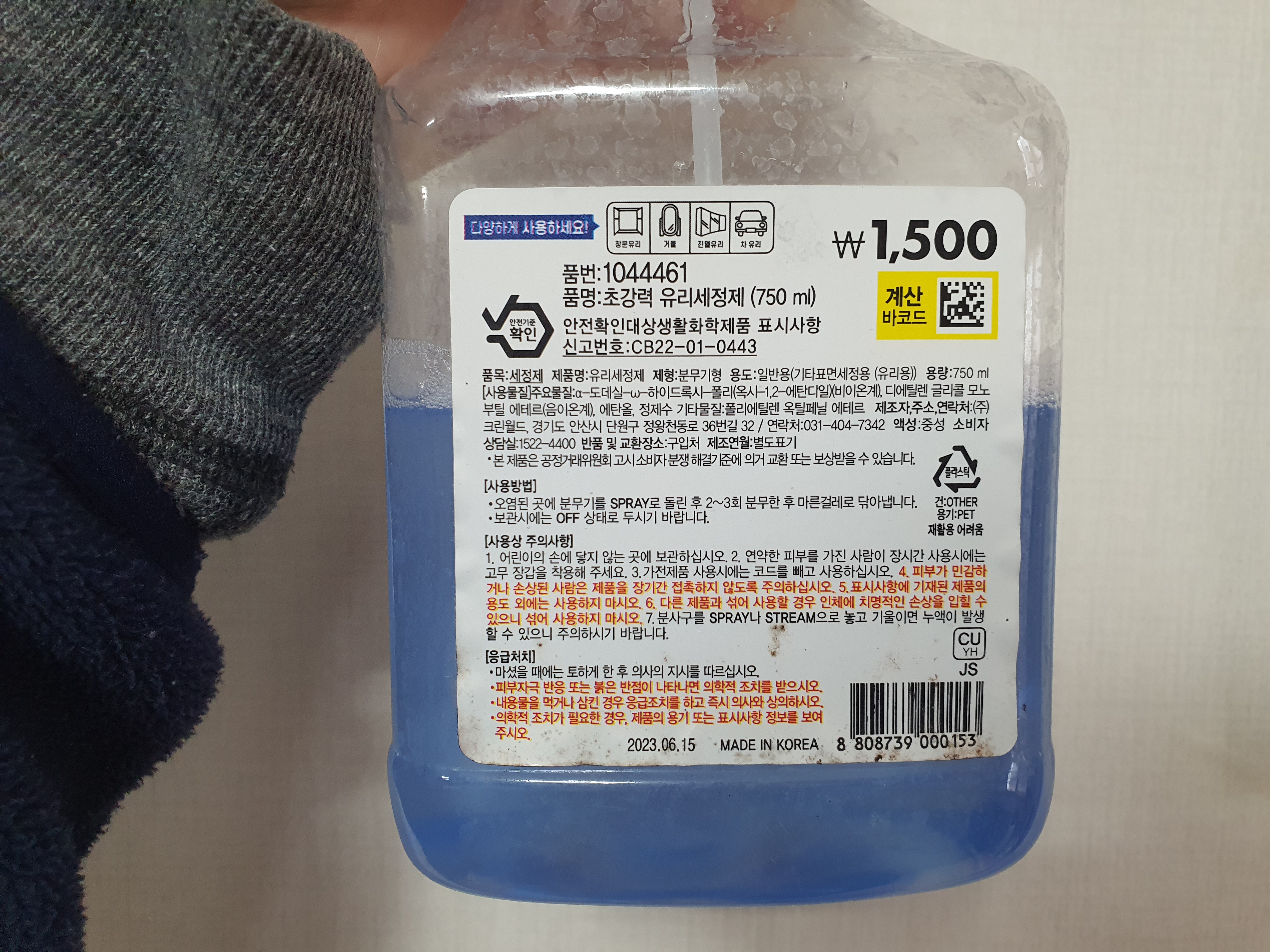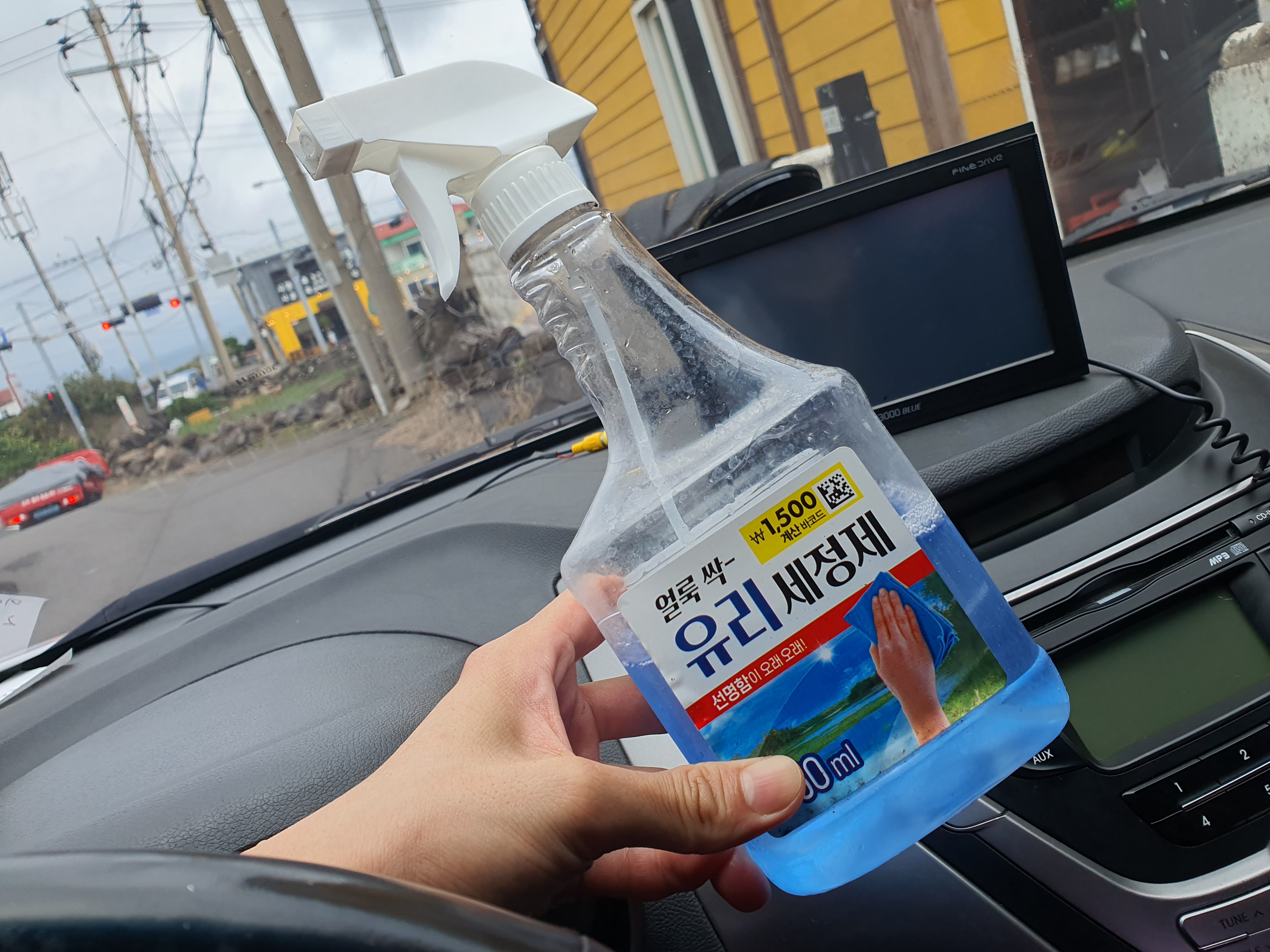 하지만 차량에 사용해도 된다고 적혀있어서, 일반 유리세정제로 차량 유리를 청소해 보았어요.