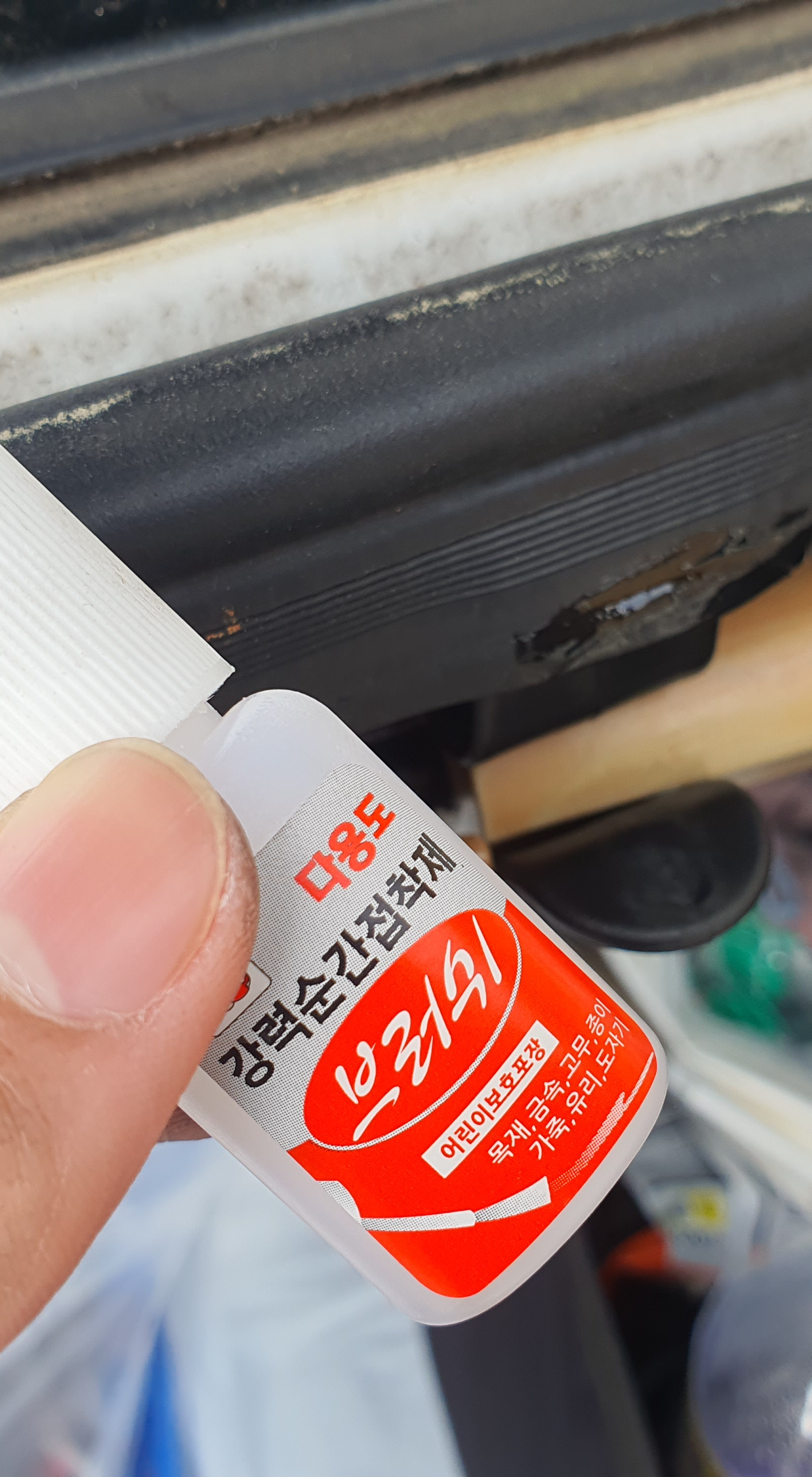 뜯어진 트렁크 고무 몰딩은 '다용도 순간접착제'를 이용해서 다시 붙여줬어요.