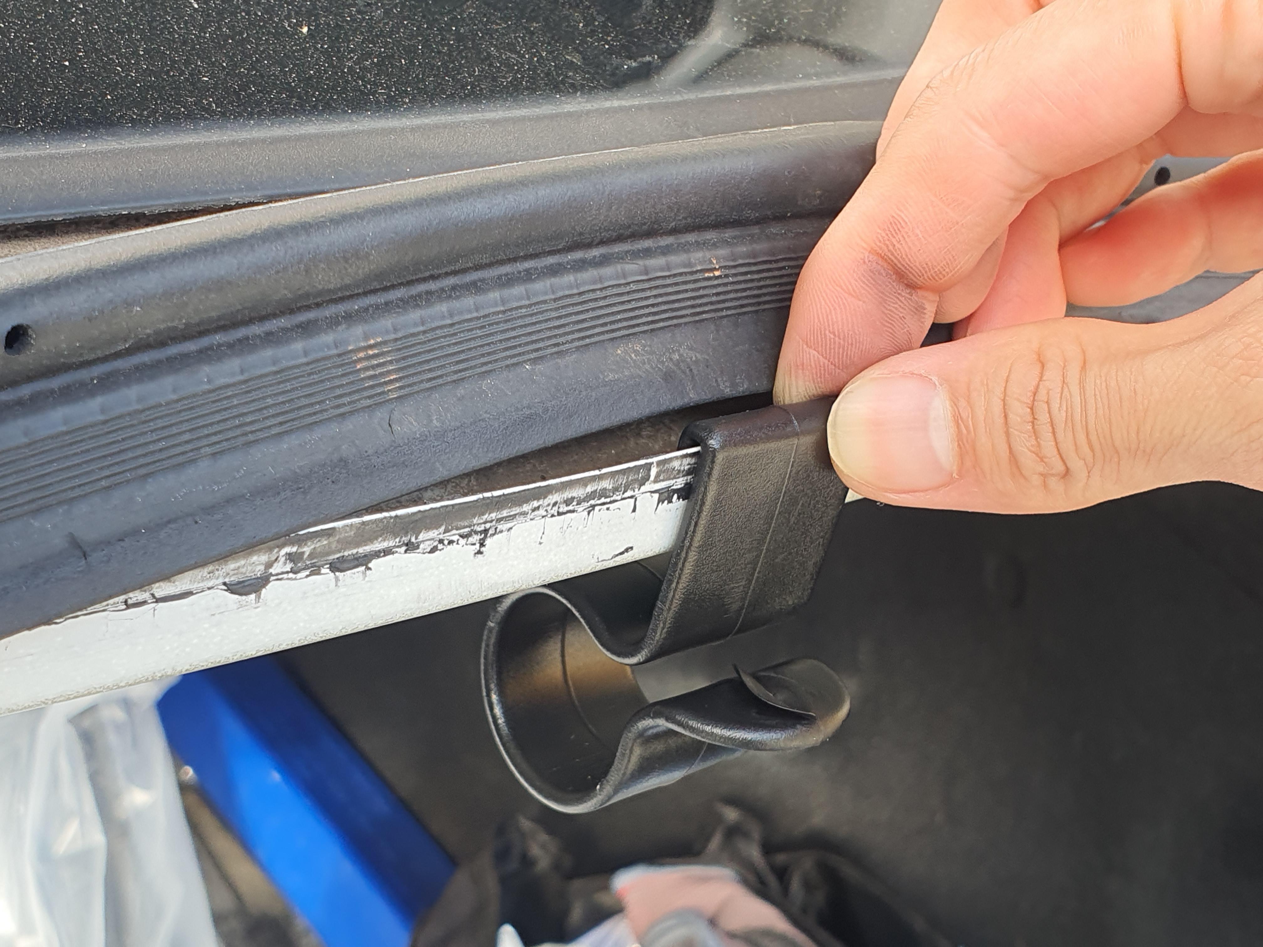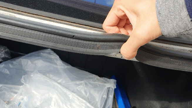 1. 트렁크의 고무 몰딩을 들어 올립니다.