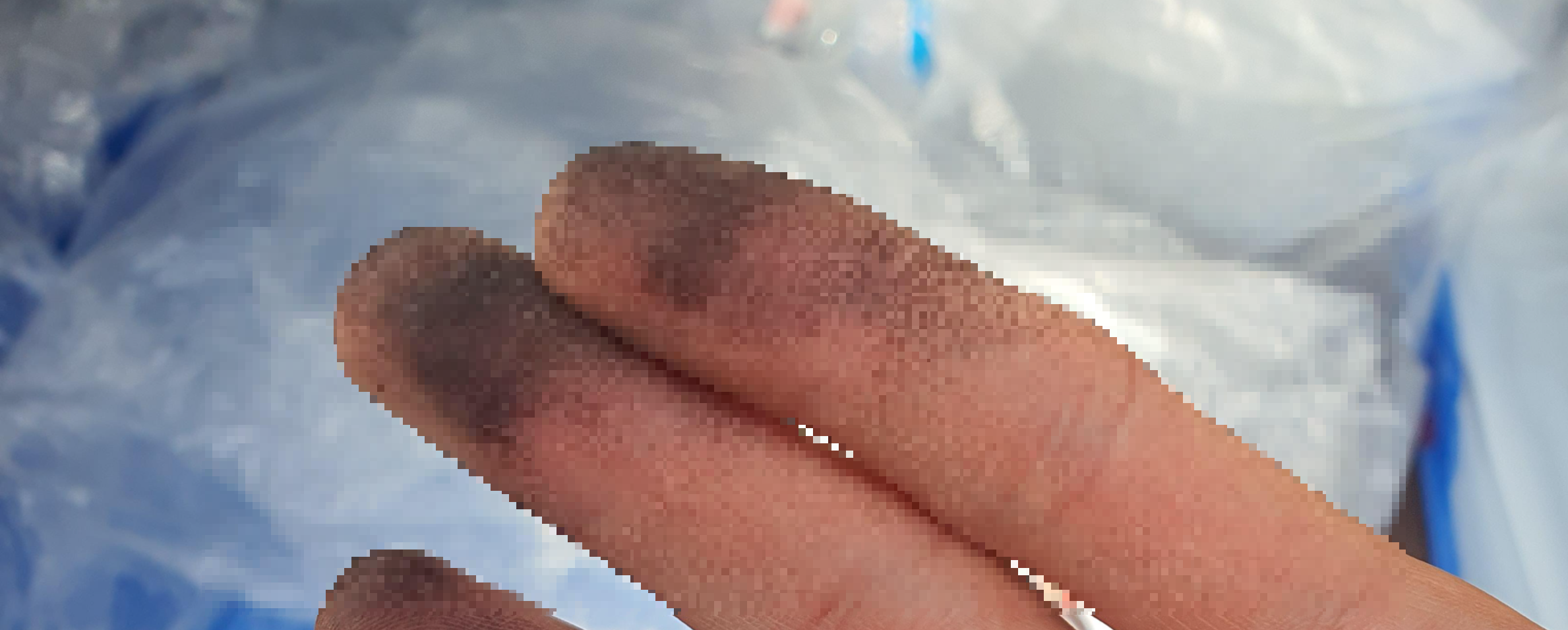 너무 낡은 차량이고, 삭아버린 고무에서 나온 검정 때가 손에도 잔뜩 묻어버렸어요.