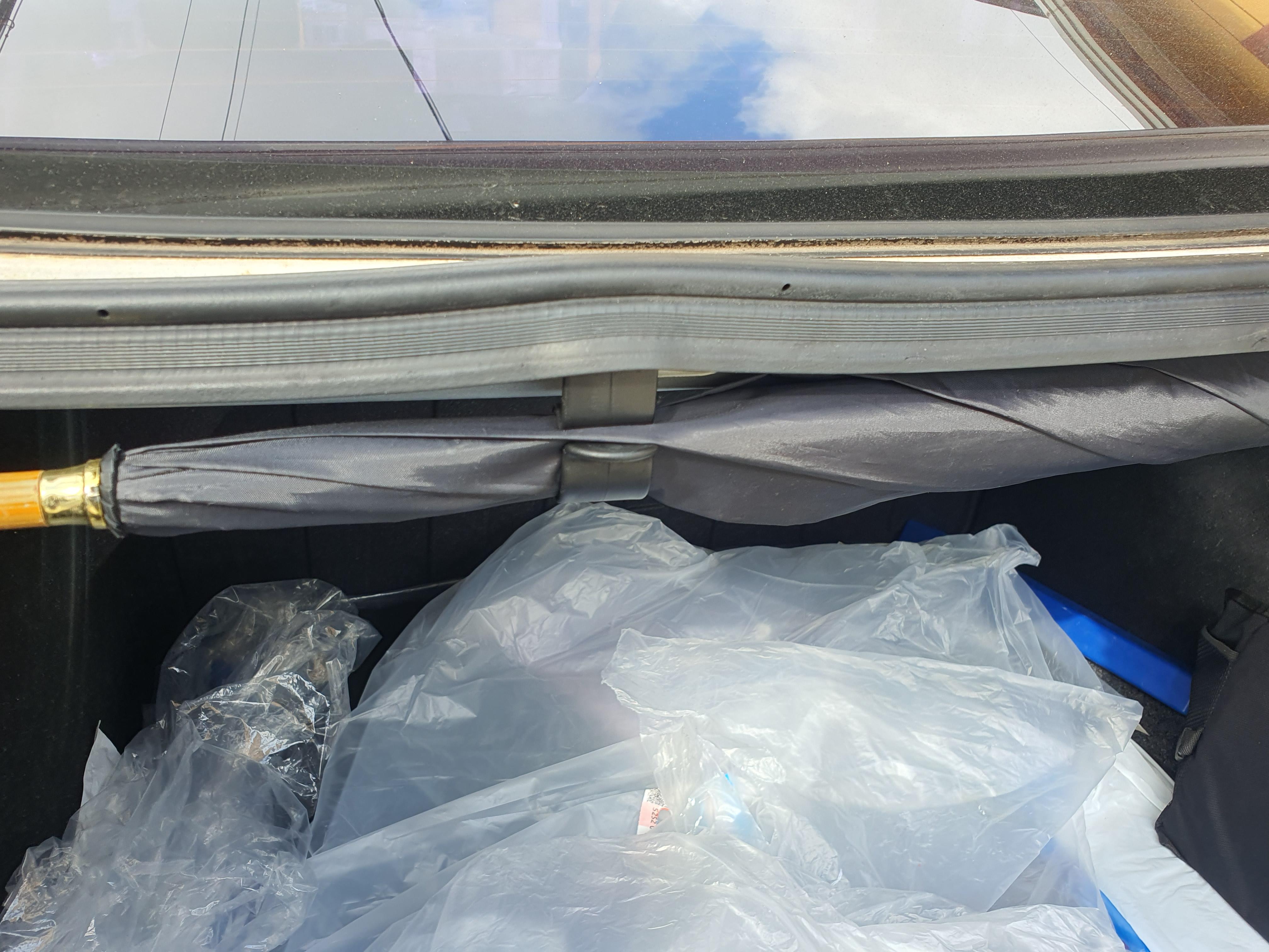 위 사진은 다이소에서 구매한 트렁크 우산걸이를 설치한 모습입니다.