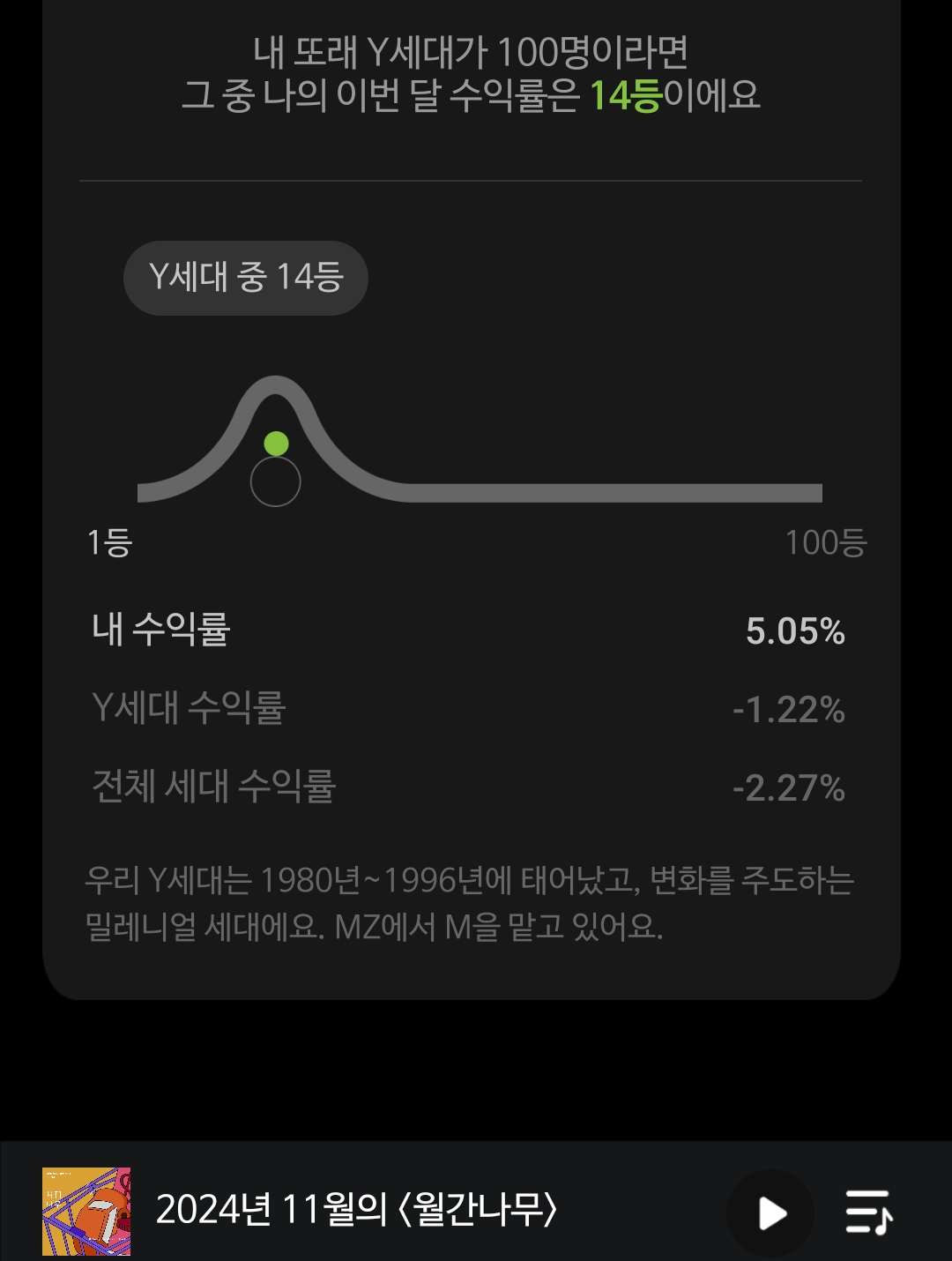 내 수익률 5.05%, 상위 14%.
