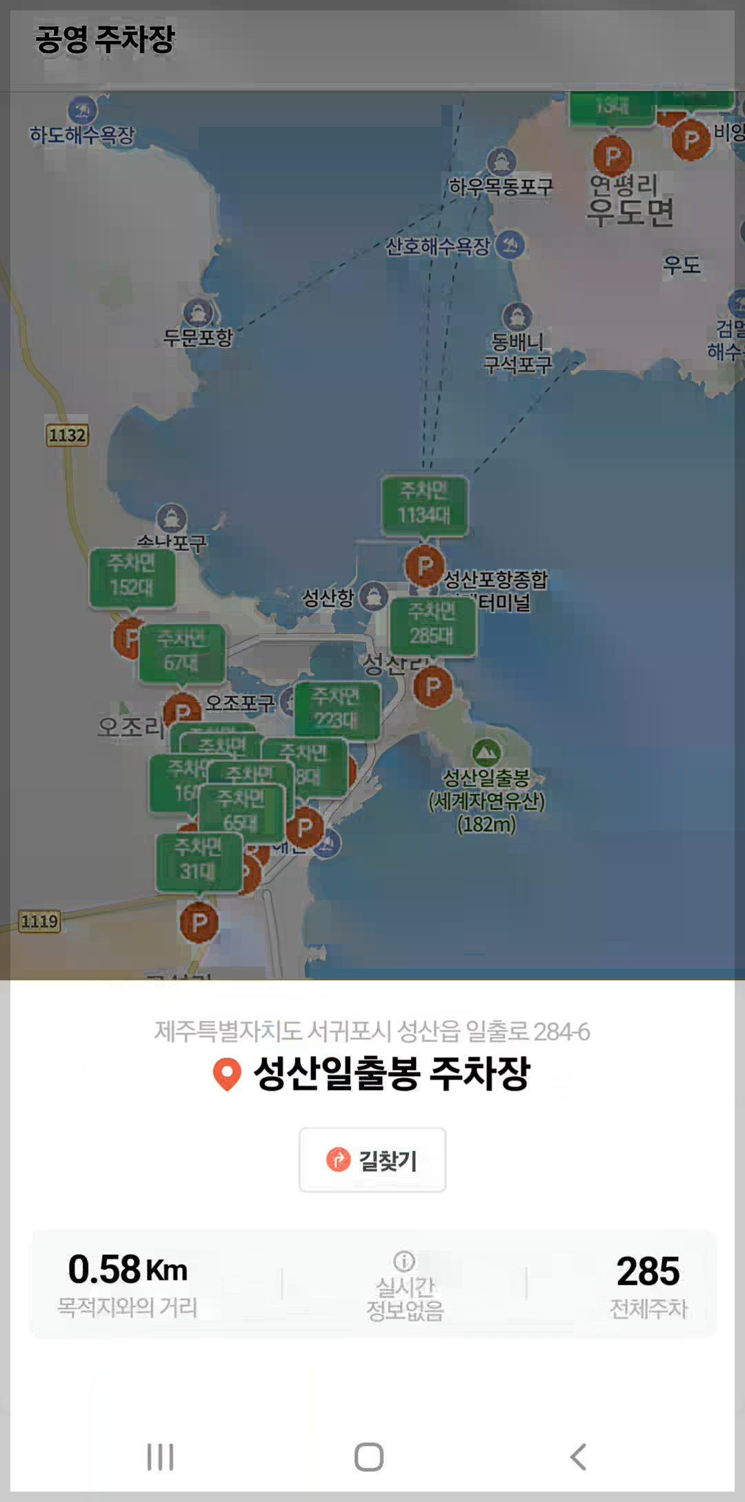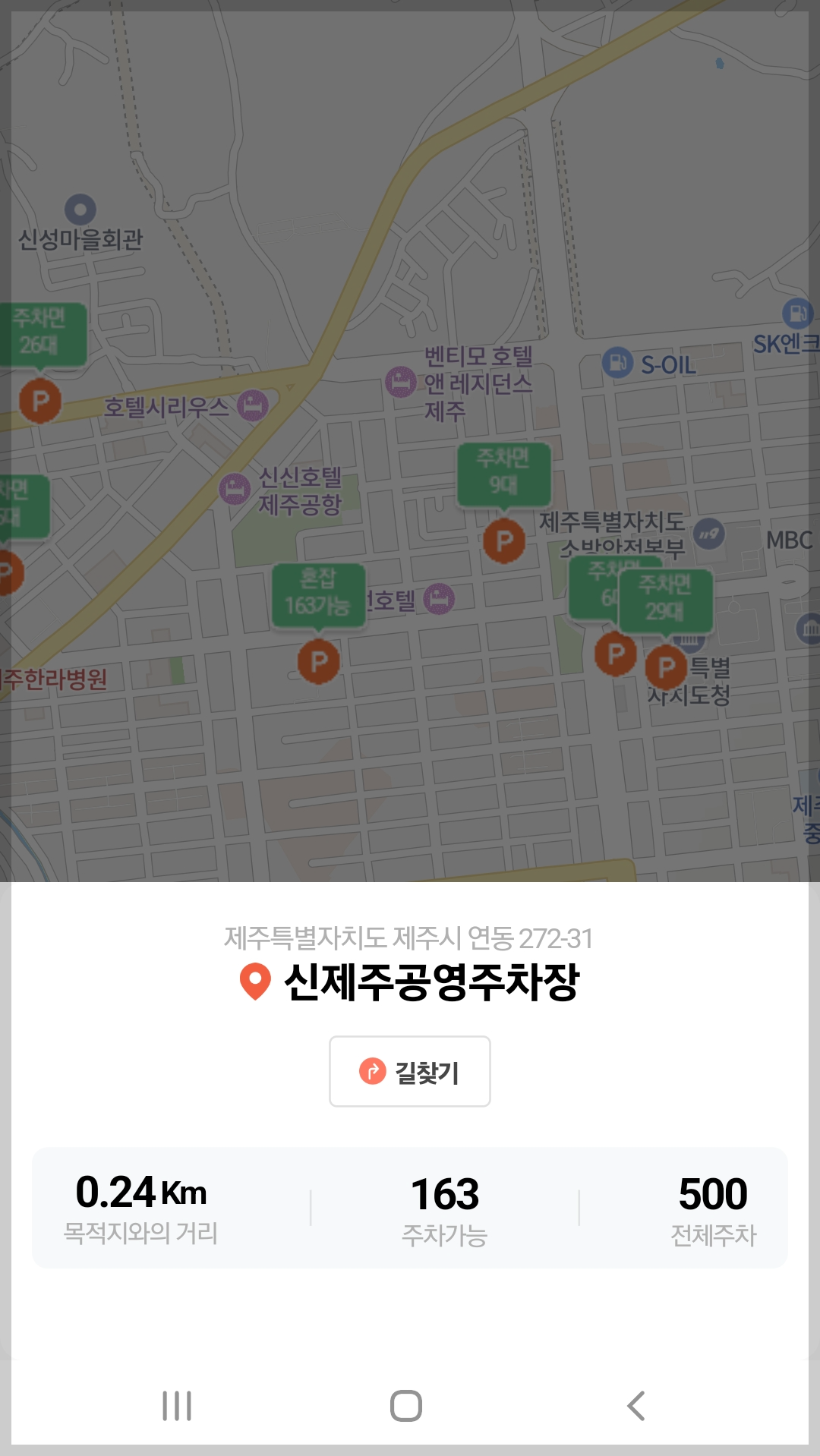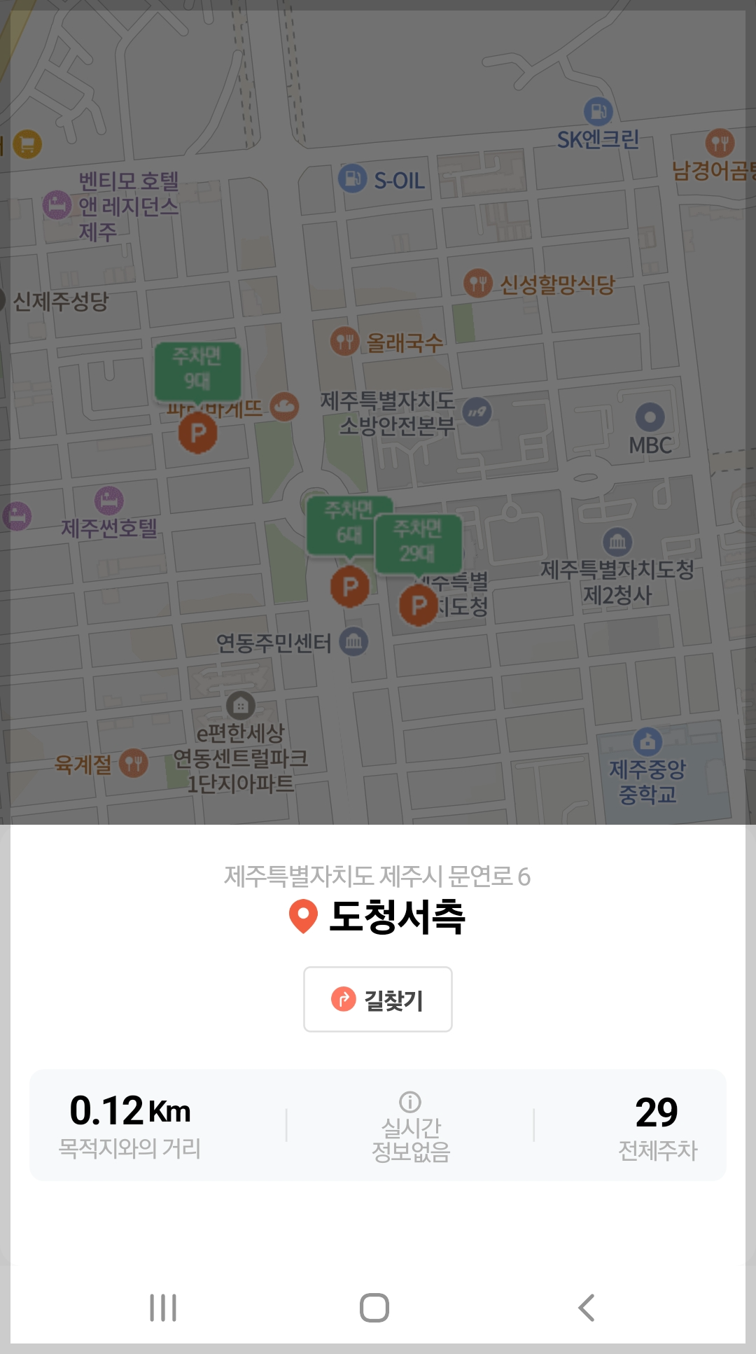 실시간으로 남은 주차면수를 확인하는 기능은 제주시 시내의 복잡한 주차장만 가능해 보여요.
