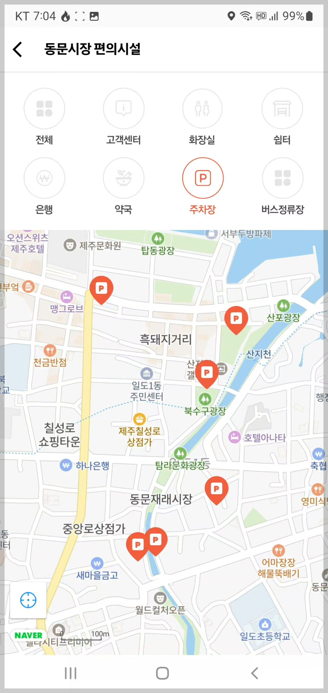 또한 제주 전통시장과 공공 주차장 정보를 한눈에 볼 수 있습니다.