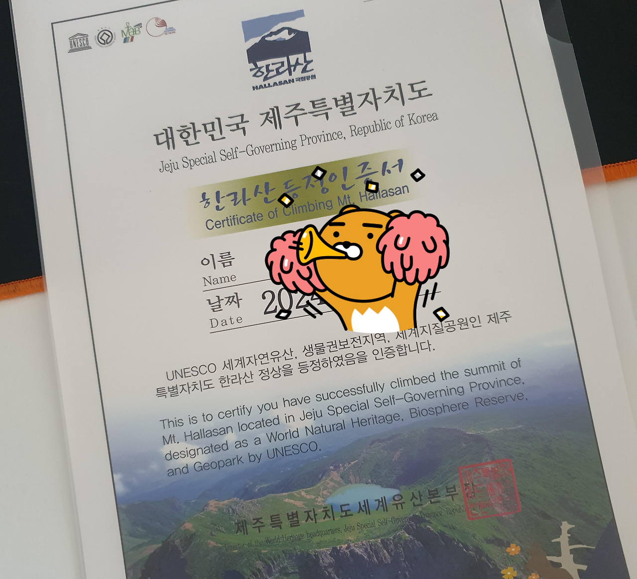 한라산 등정 인증서 종이 발급 받는 방법