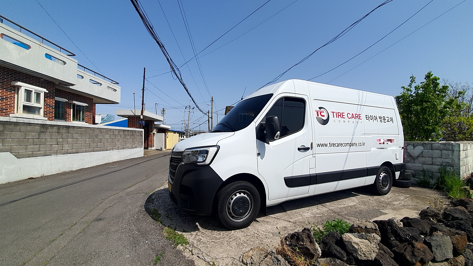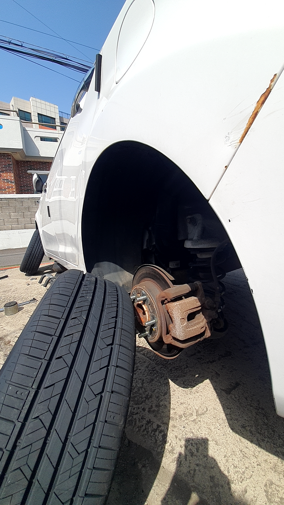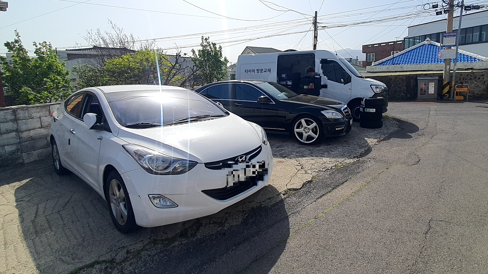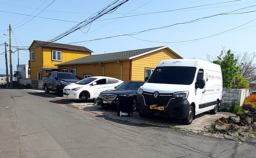 다행히 지금 거주중인 곳에 주차 공간이 있어서, 타이어 교체 차량을 주차장으로 불렀어요.
