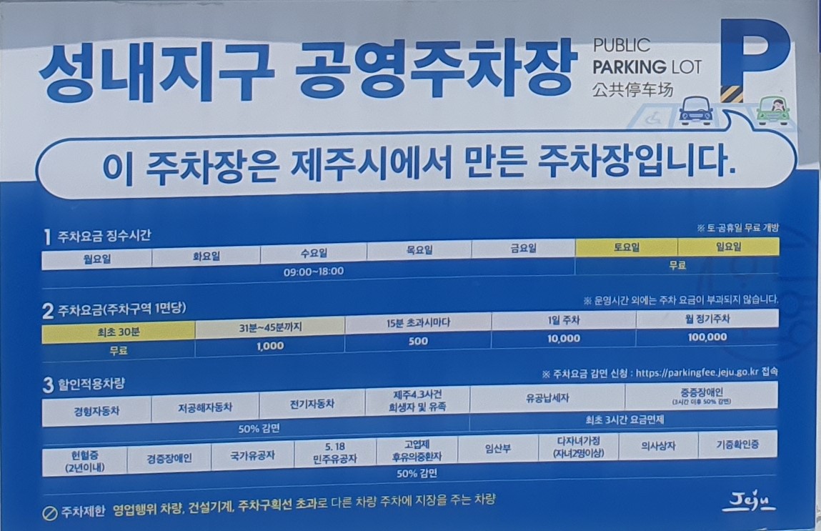 하지만 안전하고 깔끔한 여행을 원하고, 제주도 주차문화 잘 모르겠다면 유료주차장에 주차 추천해요.