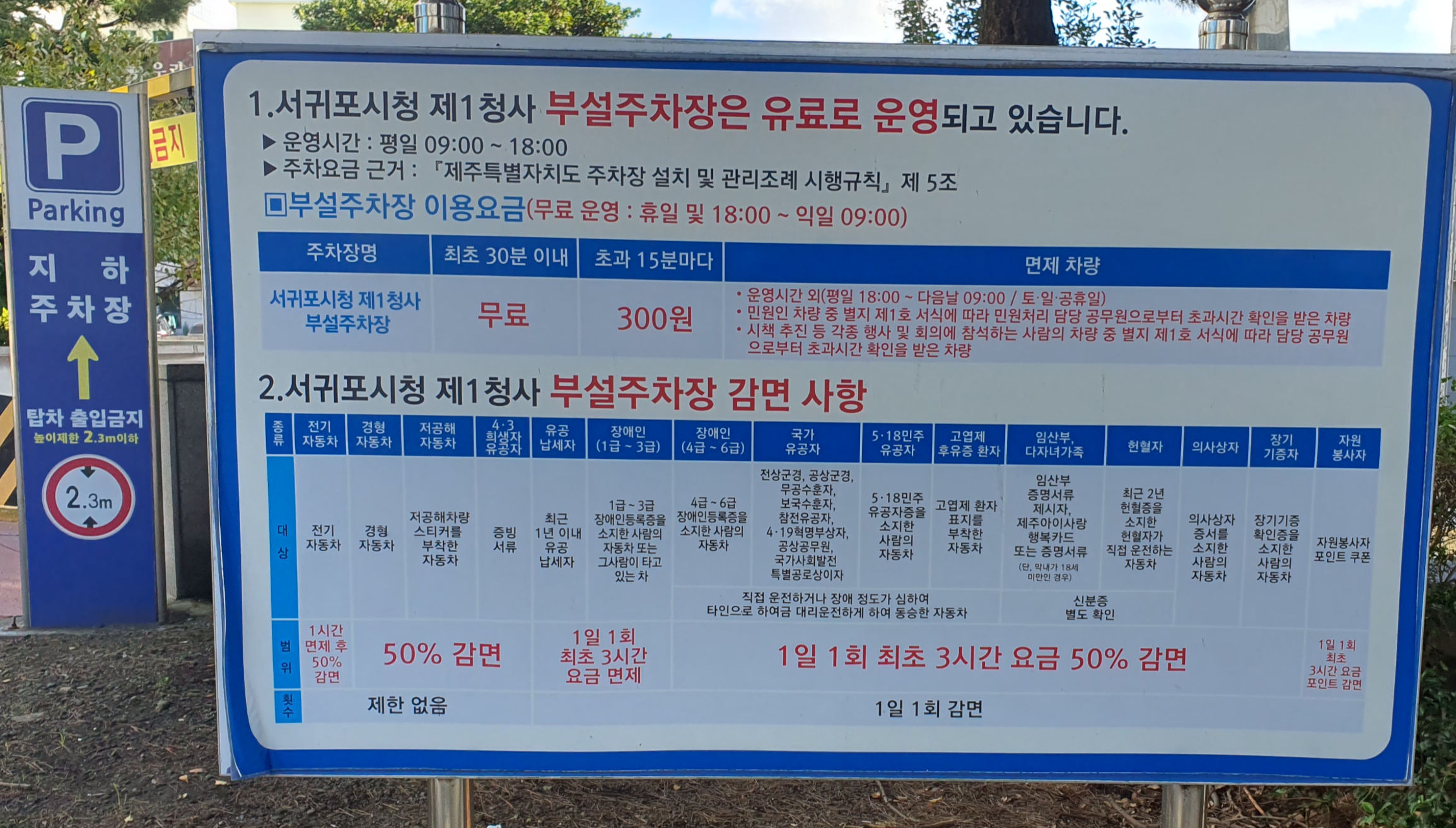 - 위치: 서귀포시청 1청사 부설 주차장