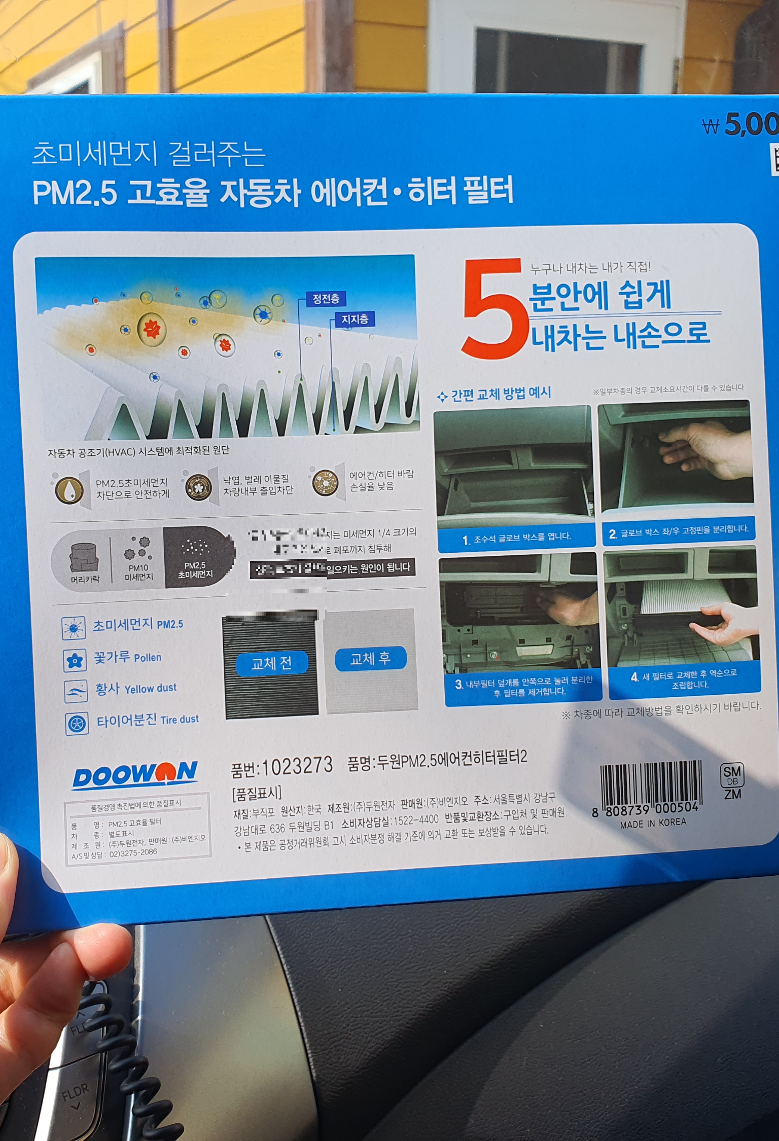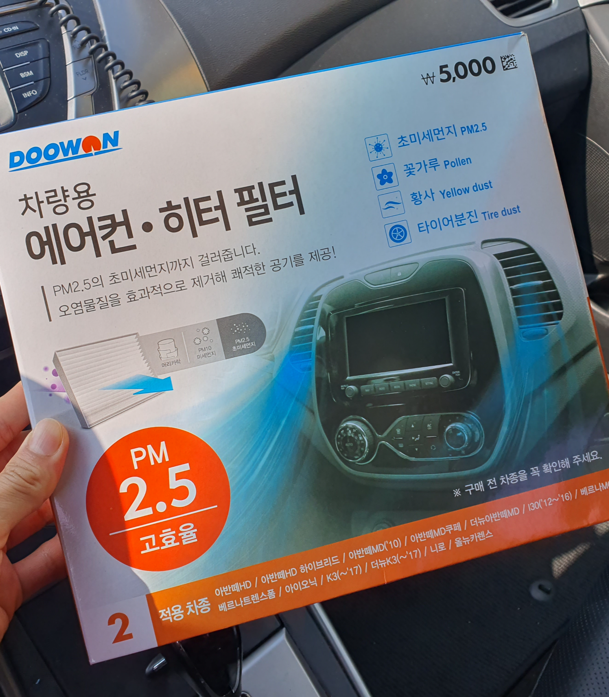 다이소 두원 DOOWON 차량용 에어컨 · 히터 필터 ₩5,000